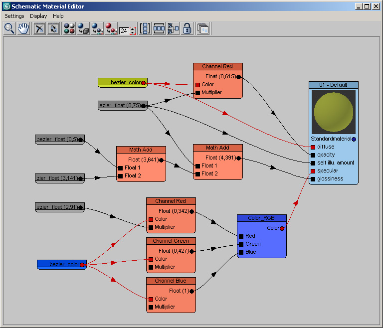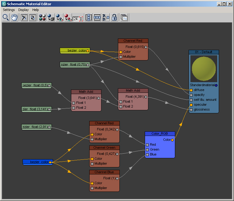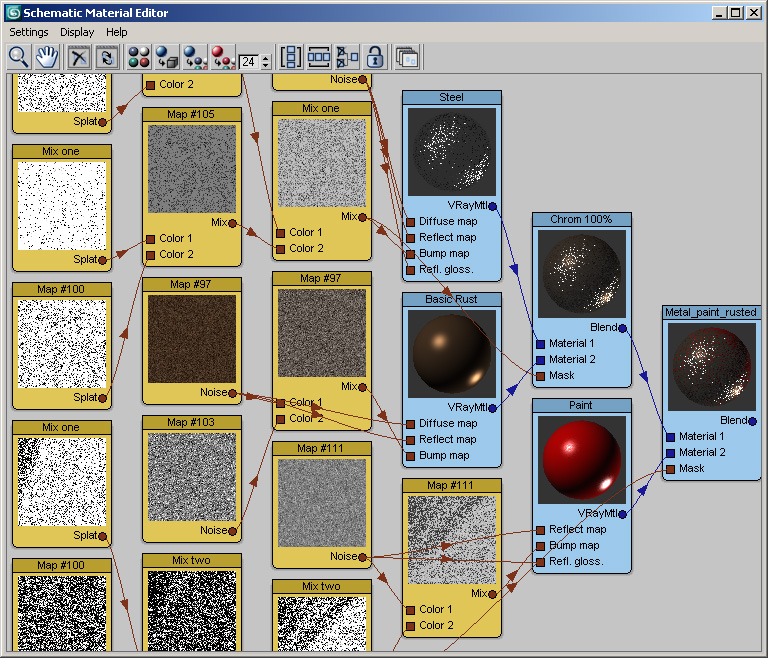– Schematic/Node based material editor – Customizable user interface – Automatically arranges nodes in sensible way – Hides all unnecessary submaterial/map slots – Controls to easily hide/unhide nodes – Ability to handle multiple schematic views – Support for 3rd party material and maps – Support for controllers (Color, Float, Script etc.) – Advanced Math and Channel nodes for complex material and map setups – Materials and maps are fully compatible with systems without Schematic Material Editor installed – Scenes saved with Schematic Material Editor info can be opened even without it installed – Material and maps are stored inside Schematic Material Editor so they aren’t lost even if not present in Material Editor or Scene